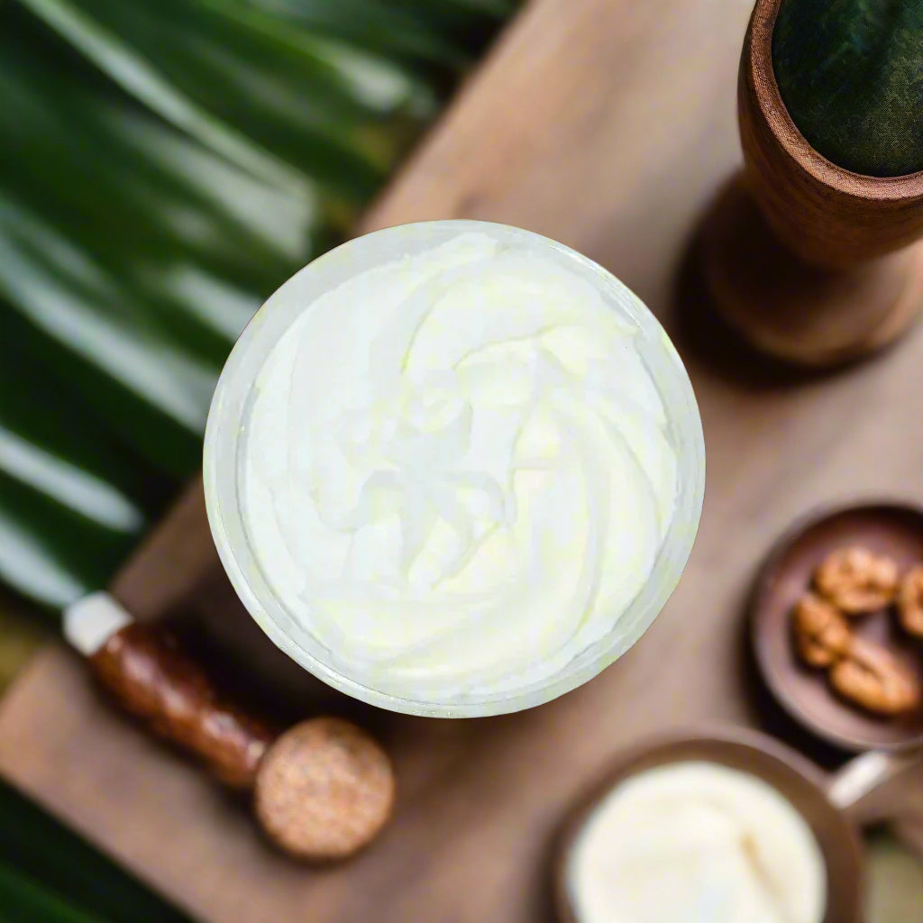 Enriched with skin-enhancing ingredients such as Vitamin C extract and essential oils, it also features nourishing butters like cocoa, mango, and shea, alongside hydrating oils including macadamia nut, sweet almond, sunflower, walnut, and vitamin E for deeply conditioned skin.