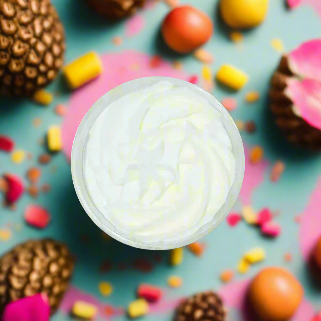Capture the vibrant energy of the 90s with the Kiwi Strawberry sugar scrub, featuring a sweet and youthful aroma that delights the senses. It begins with bright top notes of golden kiwi and green honeydew, flowing into a rich heart of wild and classic strawberries. The fragrance softly rests on a warm base of kiwi nectar, honeyquat, and creamy vanilla, harmonizing nostalgic sweetness with a fresh, playful essence.